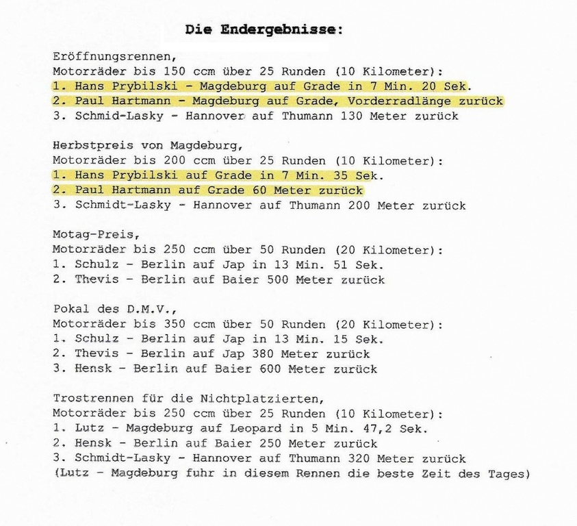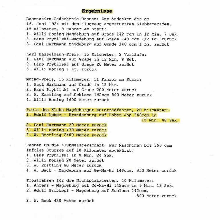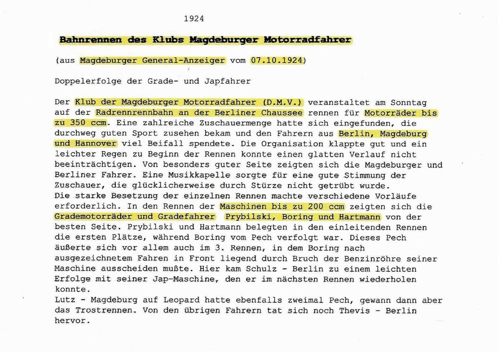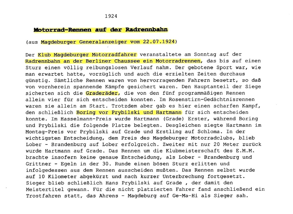 Nachfolgend ein paar Abschriften von Rennberichten auf der Radrennbahn Magdeburg aus dem Jahre 1924. Einige Magdeburger Spitzenradsportler vergangener Jahre hatten da bereits den "Sattel" gewechselt!