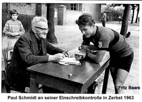 Die Vornamen der Fahrer wurden in den Ergebnislisten in der Regel nicht erwähnt, erschienen nur bei besonders herausragenden Sportlern im Rennbericht, weshalb sie oft fehlen. Vom nächsten Altmeister aus Magdeburg kenne ich den Vor-/Zunamen aber ganz genau. Ich habe den alten freundlichen Herrn noch persönlich kennen gelernt, weil er bei den Rennen in und um Magdeburg meistens an der Einschreibkontrolle saß, und wir uns beide oft unterhielten. Selbstverständlich reiste er immer auf seinem alten Rennrad an. Er schenkte mir damals ein Bild aus seiner aktiven Zeit in den 20ern. Ich kannte diesen ehemaligen Berufsfahrer, Paul Schmidt (1885-1967), damals nur als "Wackelschmidt". Doch diesen, etwas despektierlich Beinamen, erhielt er nicht etwa, weil er im Alter mit dem Kopf gewackelt habe, wie auch ich damals fälschlicherweise glaubte. Der Enkelsohn von Rudolf Niesche (s. weiter unten), Volker Jörn, klärte in einem Gespräch mit Tina Heinz dieses lang-lebige Missverständnis auf. Sein Großvater erzählte das so: „Weil er das Fahrrad nie ruhig hielt, sondern beim Start und bei den Handycap-Rennen wohl vor Aufregung immer mit dem Kopf und Lenker wackelte“. Der aus Riestedt bei Sangerhausen stammende Schmidt hatte als sportliches Vorbild den damals berühmten deutschen Weltmeister im Sprint von 1895, August Lehr aus Frankfurt a.M. und war selbst noch Zeitzeuge des Hochradfahrens. Bereits mit 10 Jahren begann er mit dem Radsport und gewann schon 1900 als 15jähriger sein erstes Straßenrennen um den Havelland-Pokal über 130 km. Er gewann bei vielen, vor allem Bahnrennen, war einmal Sieger der damals bedeutenden „Magdeburger Meisterschaft“ und Zweiter der Meisterschaft der Provinz Sachsen. Die 400 m - Zementbahn an der Berliner Chaussee war sein sportliches zu Hause. Er war Mitglied der Vereinigung Magdeburger Rennfahrer, bei der auch schon oben genannte Erfolgsfahrer wie: Brummert, Michaelis, Erstsling, Boring, Heinrich, Jankowski u.v.a. fuhren. Bei den Fliegerrennen war er in seinem Metier, und er bekam tosenden Beifall, wenn er in den Handicaps zäh seine Vorgabe verteidigte. Nach Abriss der Bahn wandte er sich erfolgreich dem Motorradrennen zu und war auch hier erfolgreich.