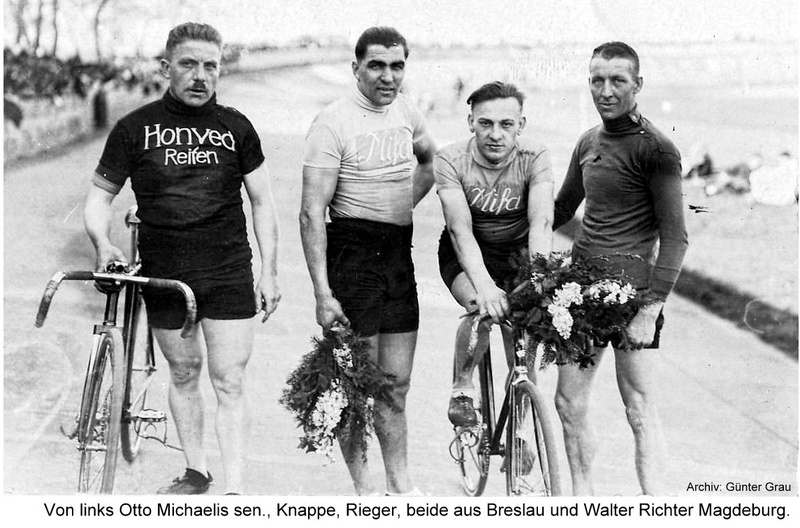 Unter vielen erfolgreichen Rennfahrern dieser Jahre muss unbedingt Otto Michaelis sen. (1886-1965) genannt werden. Als Nähmaschinen- und Fahrradmechanikerlehrling hatte er sich seine erste Rennmaschine selbst zusammen gebaut und war auch einer der ersten Schlauchreifenfahrer der Stadt. Er schloss sich früh dem Radfahrerverein „Komet“ in der Neustadt an. 1903 ging er in die Magdeburger Herrenfahrer-Vereinigung und bestritt als Herrenfahrer am 26. April erfolgreich sein erstes Rennen auf der Bahn. Mehr als 500 Siegerschleifen errang er in seiner Laufbahn vor allem auf der Bahn, aber auch auf der Straße. So gewann er einmal ohne spezielles Straßentraining die Fernfahrt Magdeburg-Quedlinburg-Magdeburg mit 20 Min. Vorsprung. Auf vielen deutschen Bahnen hat er mit der damaligen Spitzenklasse, wie Walter Rütt, Walter Lorenz, Eugen Stabe und Weltmeister Willi Arend seine Kräfte gemessen. Mit seinem Partner Heinrichs war er auch ein erfolgreicher Tandemfahrer. Später trainierte er seinen Sohn, Otto Michaelis jun., der in den 30ern zu den besten deutschen Amateuren gehörte und auf Straße und Bahn mehrere deutsche Meistertitel errang.