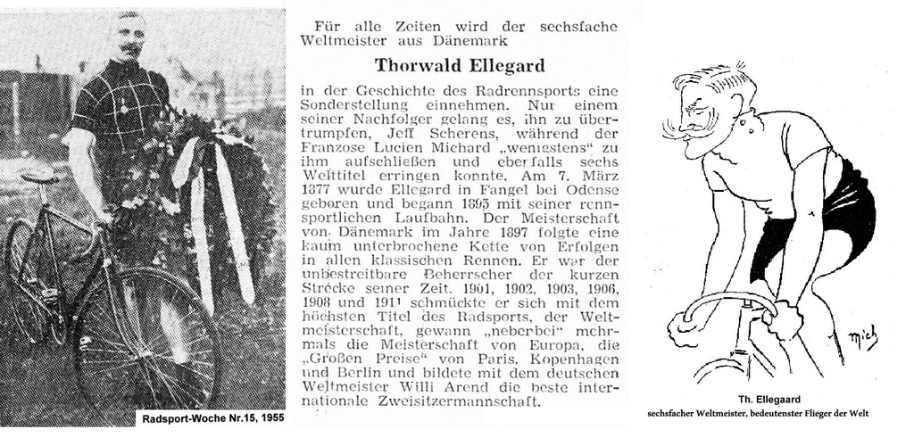 2.Thorwald Ellegaard *1877-+1954, Dänemark , Fahrertyp: Sprinter-1898-1926 Berufsfahrer-Erfolge auf der Bahn in Magdeburg 1903: 1. Platz „Drei-Weltmeister-Match“