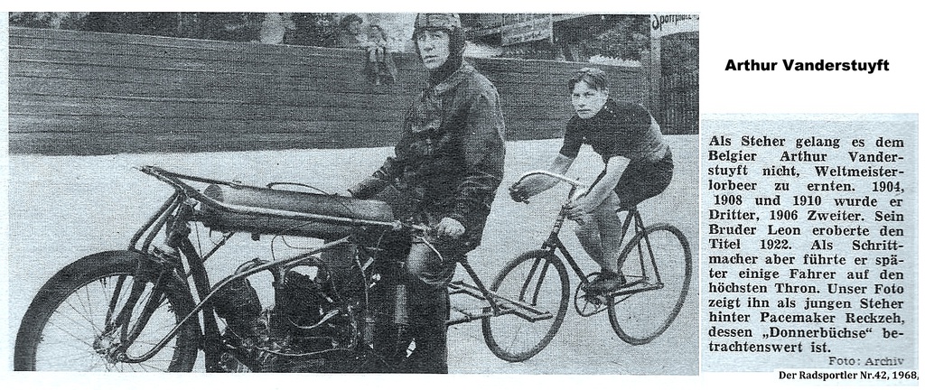 10.Arthur Vanderstuyft *1883-+1956 –Belgier/Antwerpen: 1897- Straßenfahrer-1899- auch Flieger –ab 1905 Dauerfahrer, 1902-1922 Berufsfahrer: 1907: 2. Platz „Großer Preis“