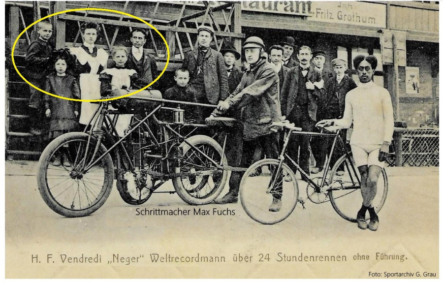 5.Willy Arend *1876-+1964, Deutscher/Hannover-Sprinter -1894-96 Amateur-1896-1926 Berufsfahrer: 1908: 2. U. 3. Platz im Hauptfahren