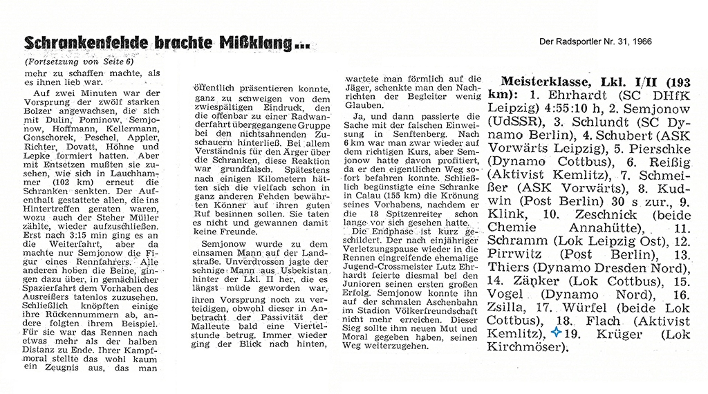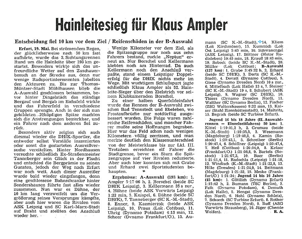 W. Kliem, H. Neuhäuser und M. Schiffel nahmen an vie- len DDR- offenen Rennen teil.